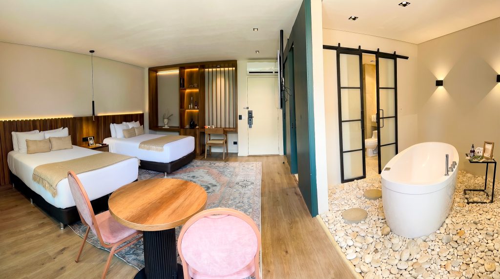 Our most exclusive room, designed for those seeking a peaceful retreat. Enjoy the spaciousness of the room and immerse yourself in a moment of total relaxation in your private bathtub. The perfect balance between design and well-being.